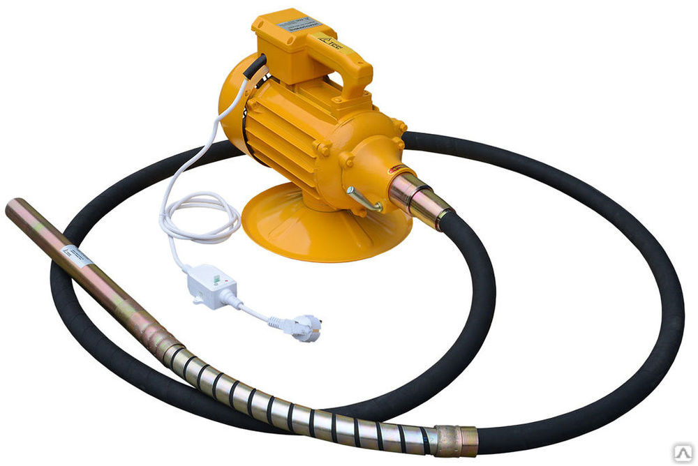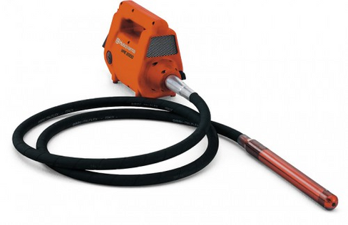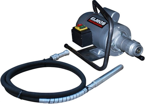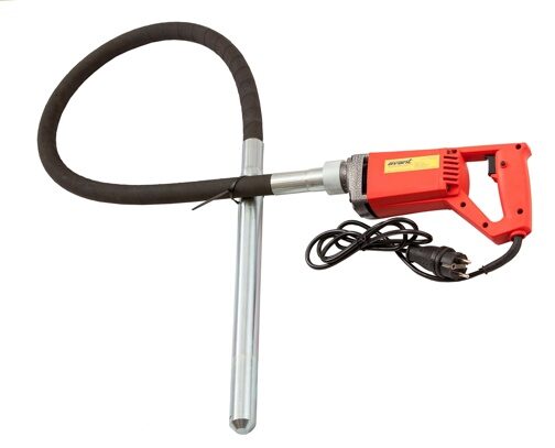 2. Профессиональные. Имеют более длинный гибкий вал и большую мощность двигателя. Подключение требует трёхфазной сети (380 В), либо работа происходит от бензинового или дизельного двигателя. Ими пользуются при заливке монолитов, когда нужно добиться высокого качества бетона.