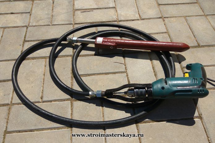 Соответственно, чем толще наконечник, тем эффективнее и быстрее происходит уплотнение. Но не всё так просто. Выбор этого параметра также зависит от степени армированности бетона, так как наконечник должен как минимум поместиться в ячейку арматуры, то есть, он должен быть меньше. Поэтому принцип выбора таков: следует брать максимально широкий диаметр, который поместится между блоками арматуры в заливаемом объекте. Бытовые модели могут иметь диаметр около 50 мм, а промышленные до 150 мм.