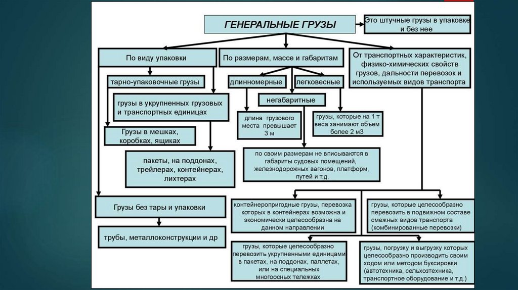 По способу погрузки/выгрузки:навалочные, штучные, наливные и сыпучие.