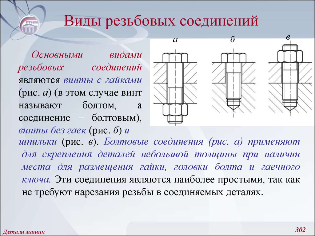 Решающим аспектов для определения классификации является профиль нарезки. На основании данного критерия принято выделять следующие виды соединений:
