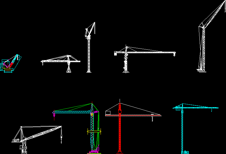 Чаще всего используются при строительстве высотных зданий, так как обладают наилучшей грузоподъемностью. Они строятся вместе со зданием и растут вместе с ним. Когда строительство завершено, происходит обратное, и кран убирается. Существует три различных типа башенных кранов: краны-молоты, башенные краны с маховой стрелой и самомонтирующиеся башенные краны.