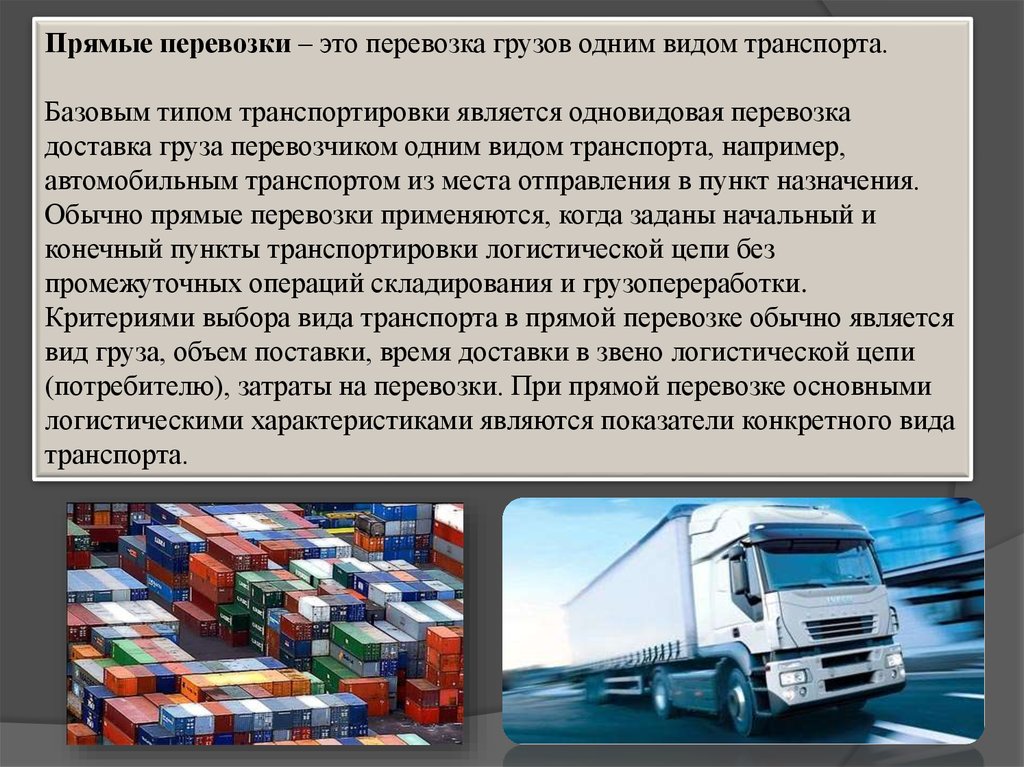 В нескольких случаях автомобильные перевозки являются самыми выгодными. Достигается оптимальная организация поставки «от отправителя – к получателю». При этом не требуется дополнительно разгружать/грузить товары, что минимизирует возможные повреждения, повышает скорость доставки.