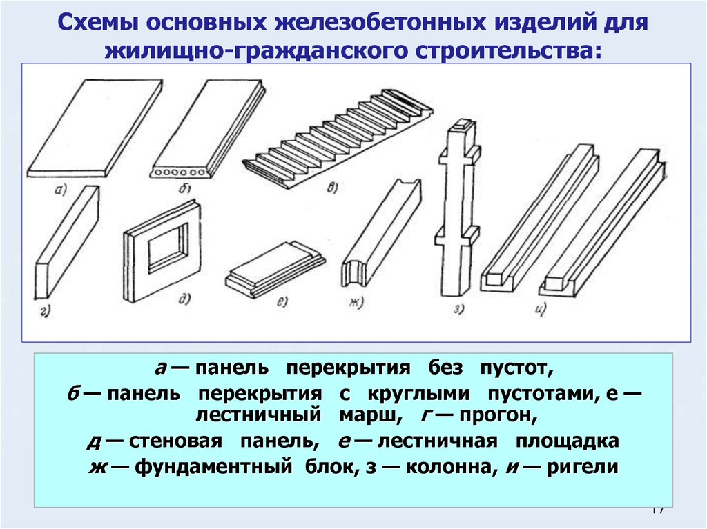 Теперь ознакомимся с наиболее распространенными типами железобетонных конструкций, которые повсеместно применяются в строительстве.