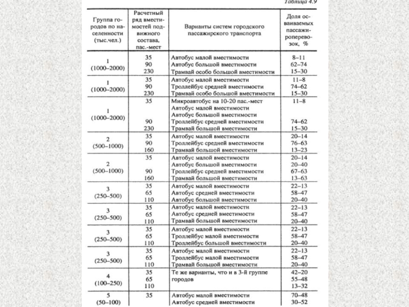 Таблица. Классификация автобусов по вместимости