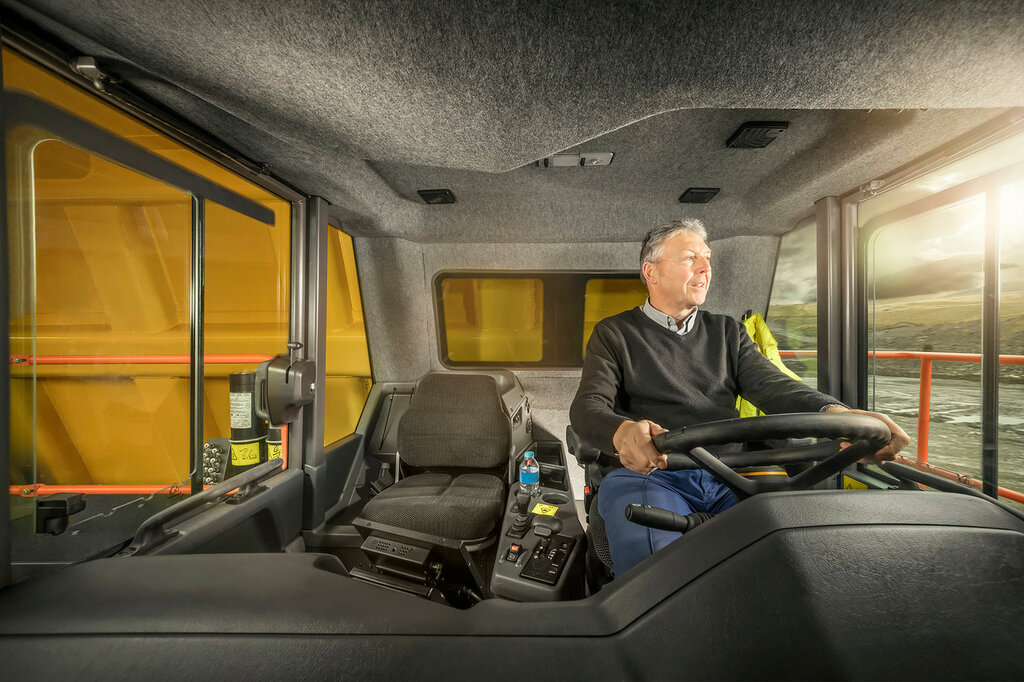 Здесь ничего особенного не увидишь, ведь это обыкновенный «работяга». В нем для водителя предусмотрено удобное кресло, а также кондиционер, аудиосистема и качественная коробка передач. Больше для карьера ничего не нужно.