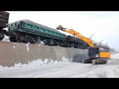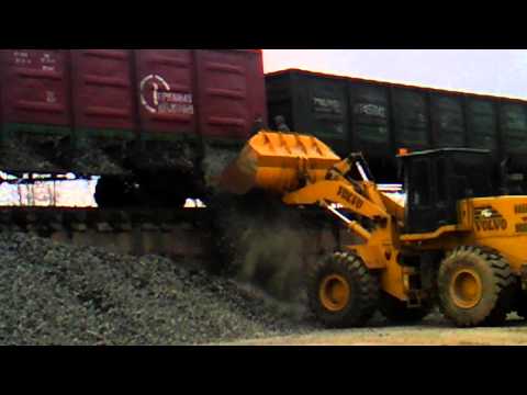 Разгрузка полувагонов с щебнем в Санкт-Петербурге