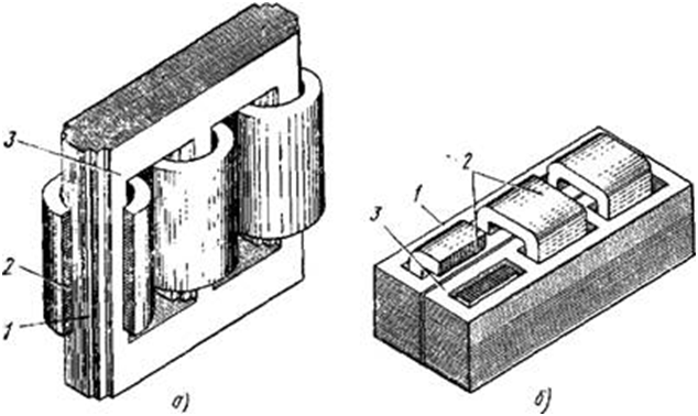 зависимости от взаимного расположения стержней, ярм и обмоток магнитопроводы