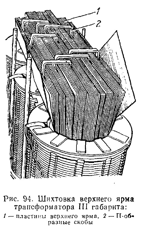 - Шихтованная магнитная система. Установка стержней и ярм выполняется переплетом с образованием цельной конструкции.