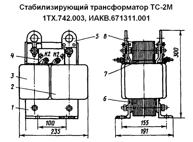 Детали обмотки располагаются на вертикальных цилиндрах. Боковые ярма отсутствуют. Стержневые П-образные магнитопроводы по ГОСТ 22050-76: