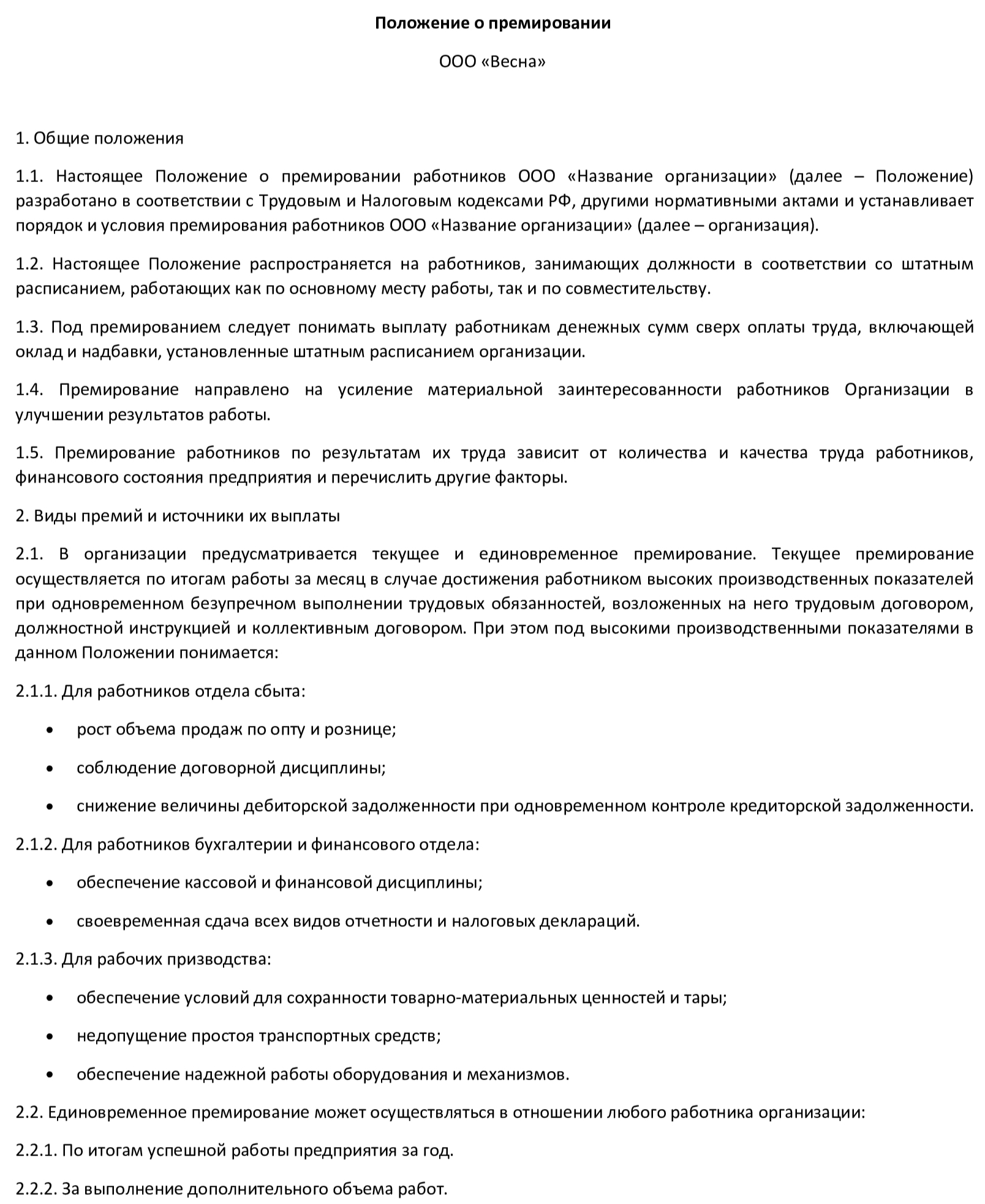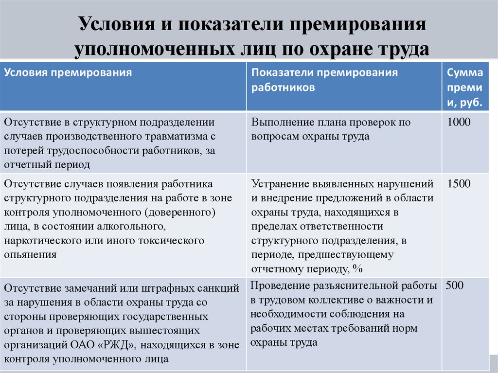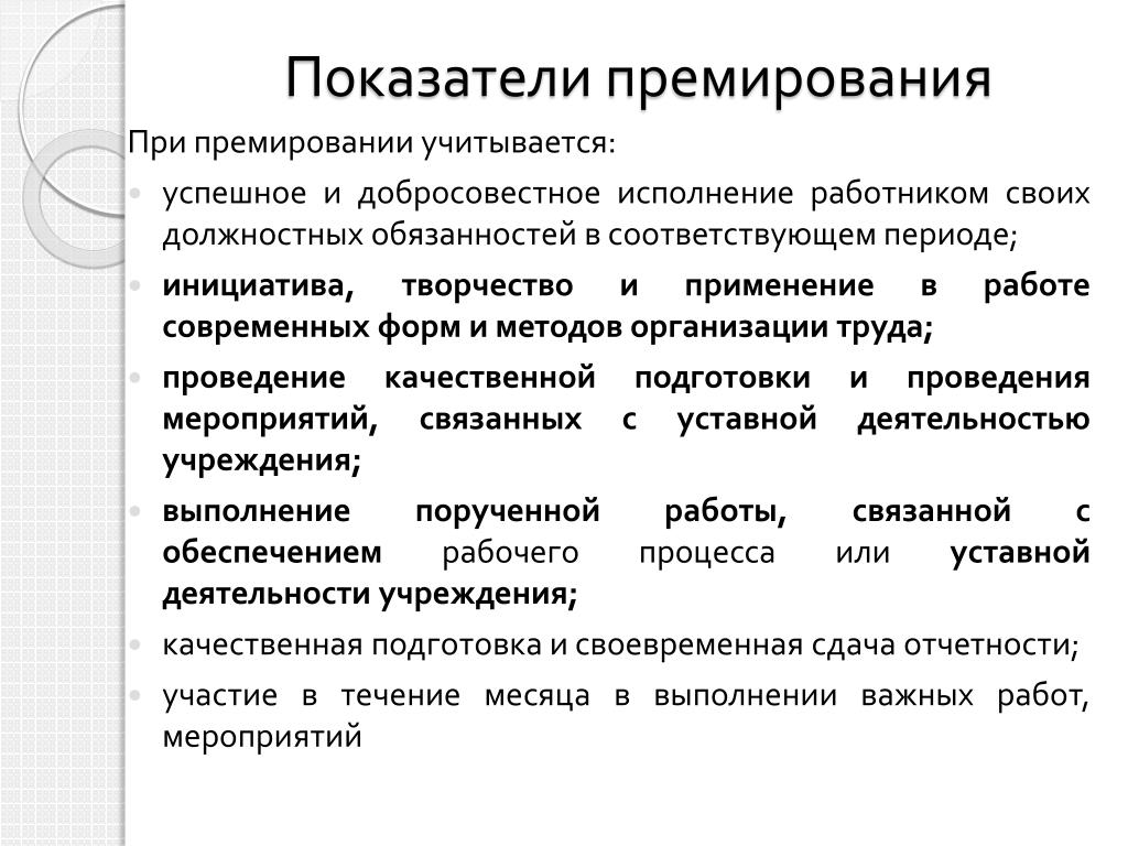 Показатели премирования должны соответствовать задачам организации и зависеть от реальных трудовых усилий коллектива или отдельных работников.