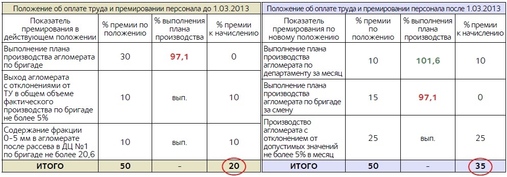 Установленные показатели и условия премирования не должны дублировать друг друга, чтобы улучшение одних показателей не повлекло ухудшения других.