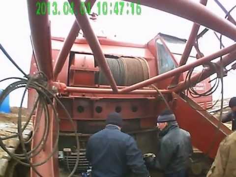 Новый канат расправляется, закрепляется в барабане с помощью прижимных болтов, и наматывается несколькими витками на барабан.