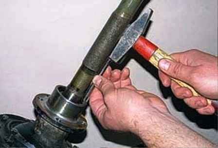 Второй способ был куда как сложнее и требовал для реализации мастерской. Сначала, тупо рассверливали заклепки на левой половине заднего моста от ГАЗика или Волги и на прессе выпрессовывали чулки из корпуса моста.