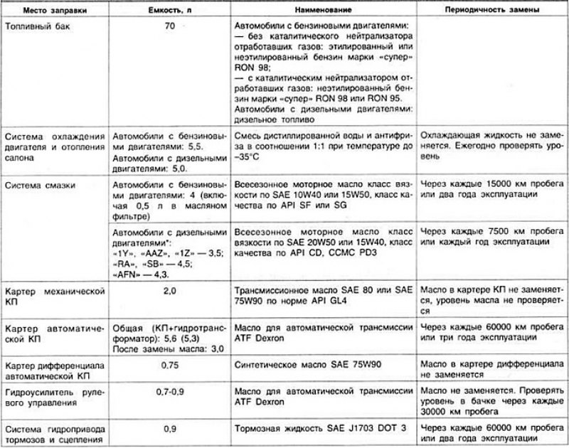 | Агрегат/ узел | Объём заливки (литров, грамм) | Рабочая жидкость или смазка | Лист допуска MB Blatt Nr. |