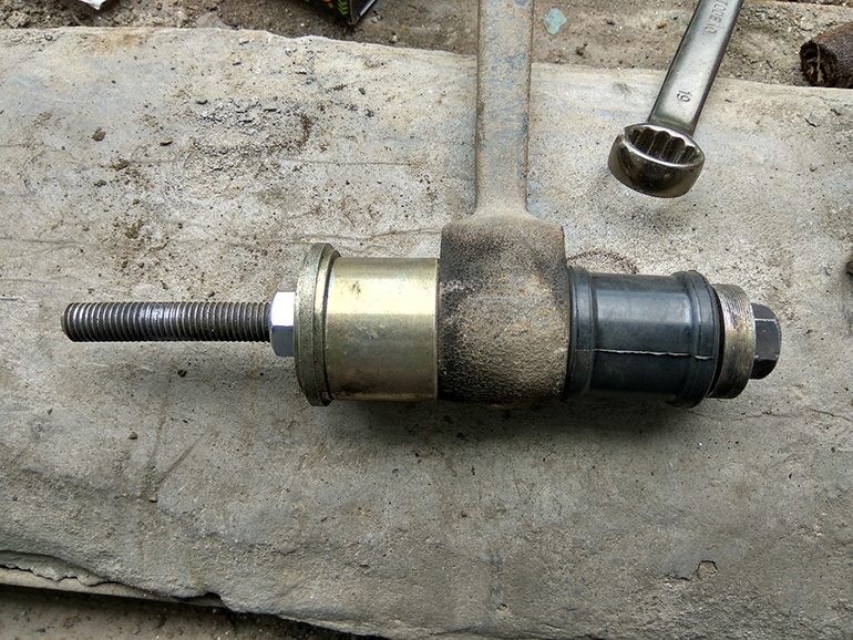 Продолжайте качать домкрат вниз. После завершения отказавший подшипник упадет