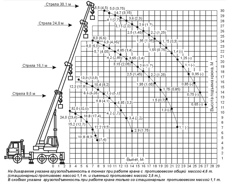 | Максимальная масса груза, с которой допускается телескопирование стрелы, т: | 6,0 |